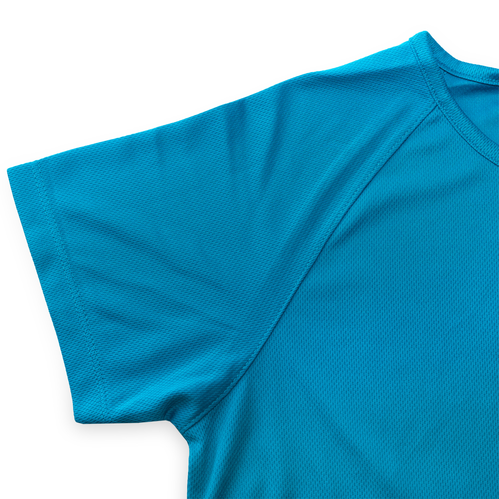 Dětské sportovní tričko s krátkým raglánovým rukávem, prodlouženým zadním dílem, s kulatým průkrčníkem a s bočními švy. Funkční materiál zajišťuje odvádění potu a udržování tělesné teploty. Tričko je vhodné na individuální sportovní trénink nebo na sportovní akci. Doporučujeme nosit tričko přímo na tělo, proto objednej raději o velikost menší.